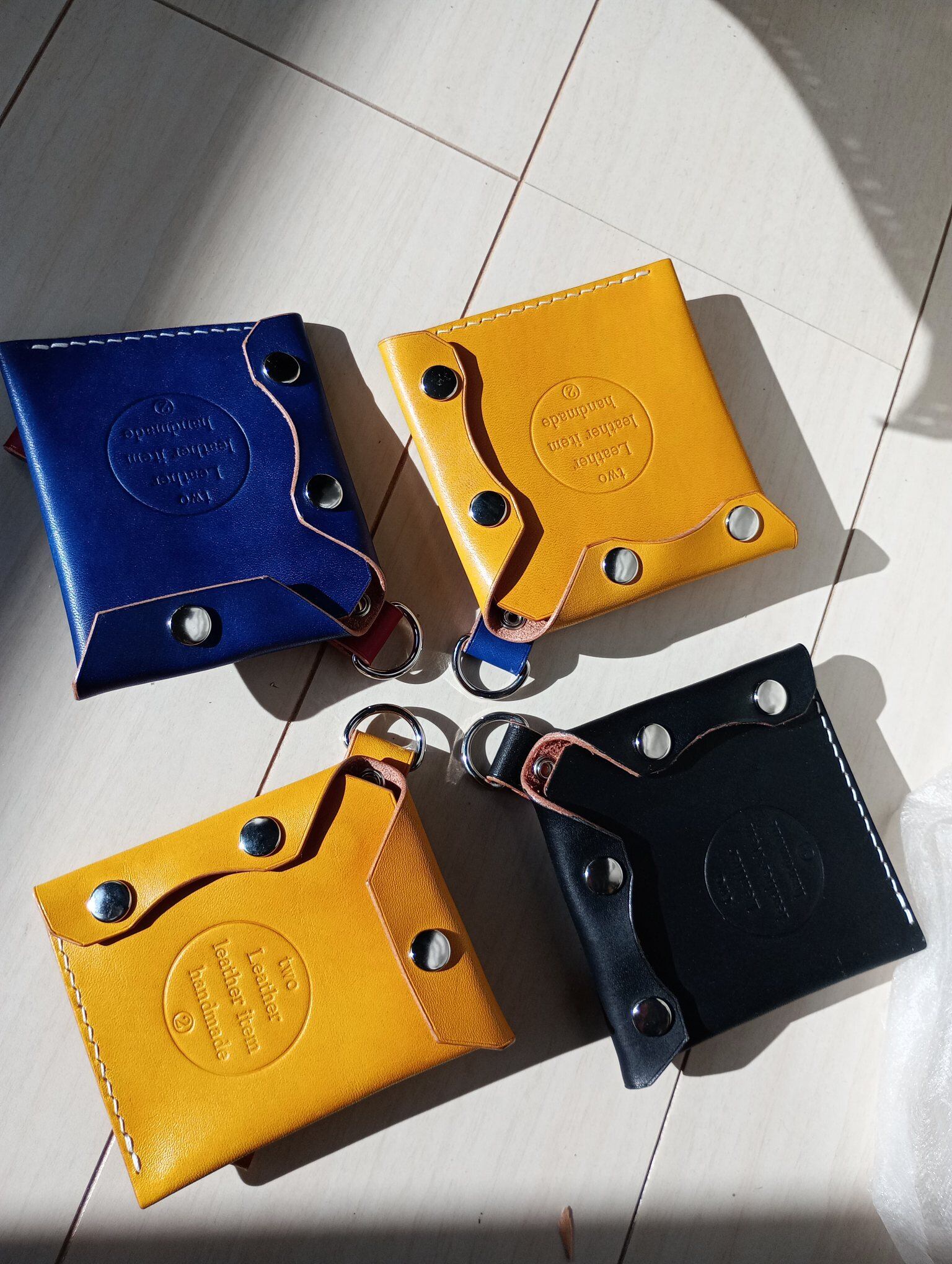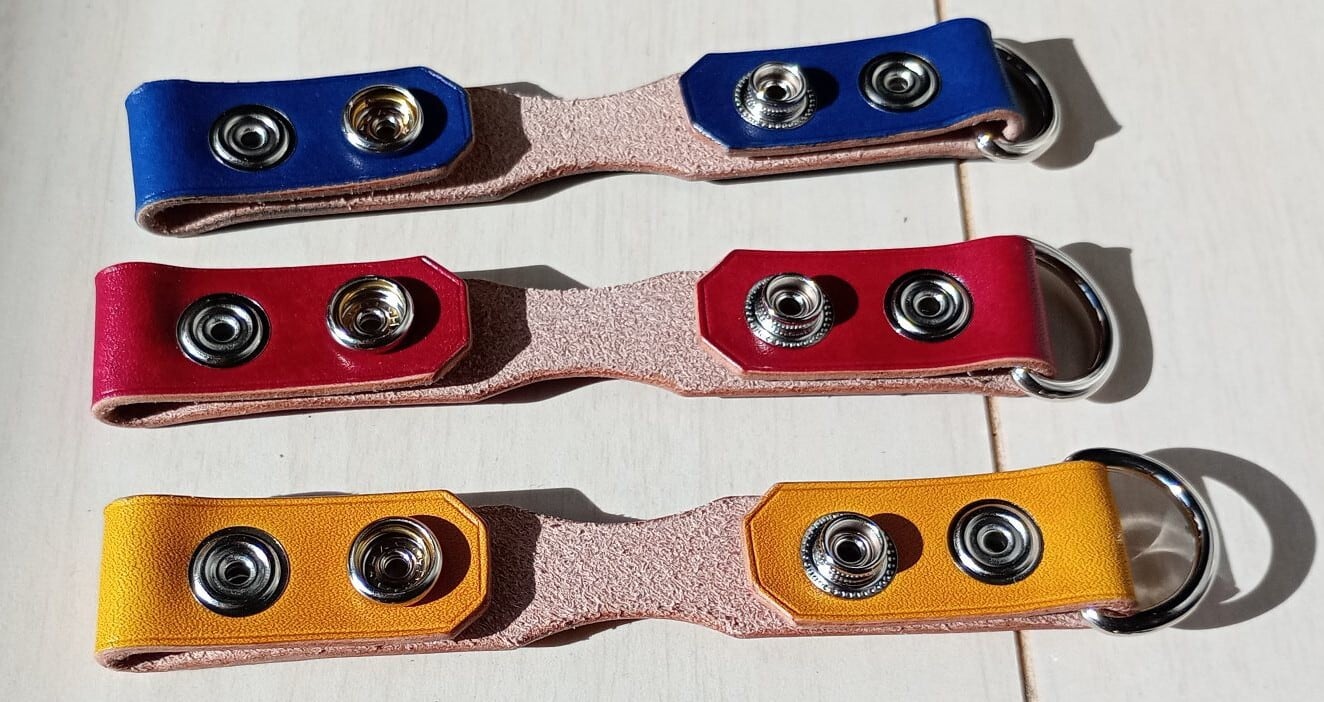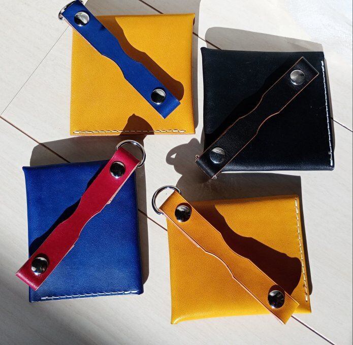 ■ カラー:イエロー・チェリーレッド・スカイブルー・ブラック/サイズ:縦約13.5cm・横約2.5cm・厚み金具含まず約1cm*革の種類によって変わります
